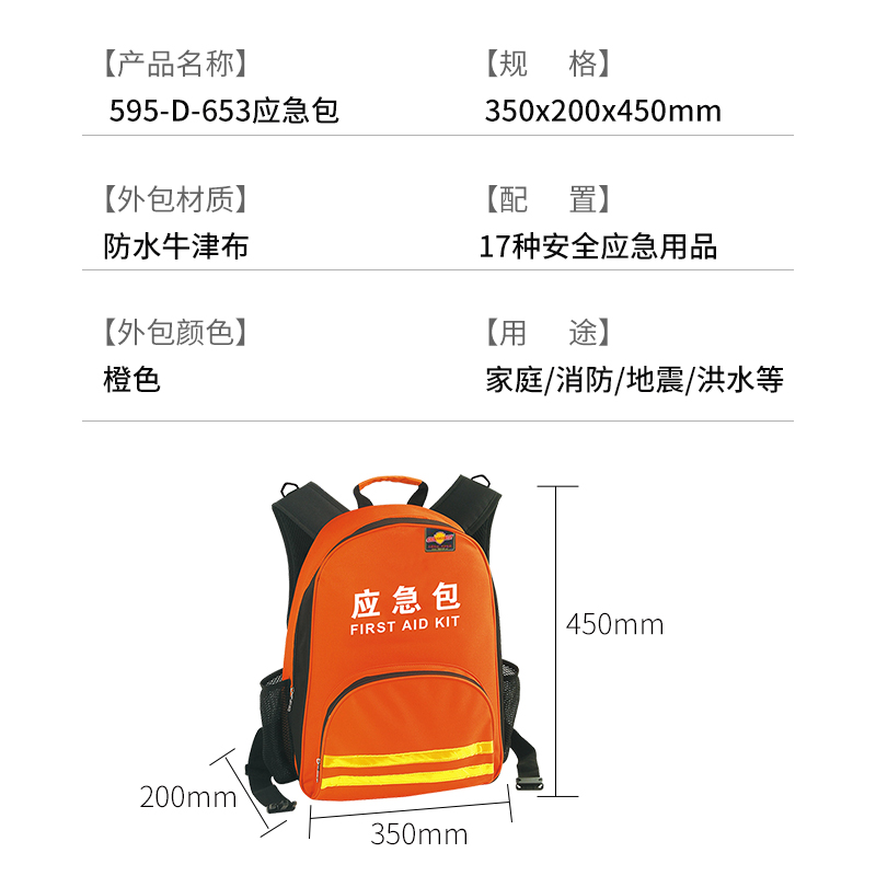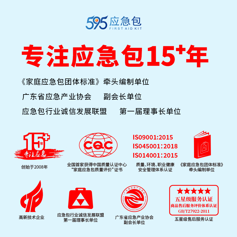 595防灾应急包,适合突发灾害事故时恶劣环境下使用,配置全面、科学,满足从日常保健到灾难自救逃生的全面需求。