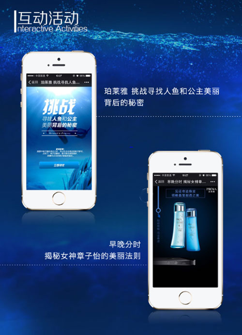 而为了让产品能更直接的面向消费者,建立一套更为精准且更具吸引力的营销方式,珀莱雅早晚水漾系列打破传统思路,推出广受年轻一代喜爱的手机端小游戏“寻找人鱼公主”等,游戏广受转载,虏获大批粉丝。同时早晚水漾系列还配合线上推广,联合时尚媒体举办线下专场沙龙活动,邀请各位护肤美妆达人共同体验早晚水漾的秘密,让消费者直接收获产品使用的真实感受,达到互动体验的目的。