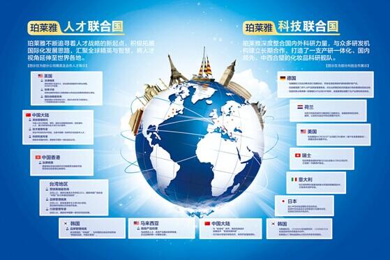 打造美丽“联合国”全球成长之路,人才是最关键的核心竞争力,珀莱雅深入美国、英国、韩国、马来西亚、港台等国家和地区,邀请耶鲁、哈佛、剑桥、清华等名校的高端人才;凝聚常春藤、华尔街、WPP、中科院的精英智慧;联合奥斯卡提名导演、好莱坞时尚造型师、法国资深摄影师、台湾知名设计人,合力打造品牌形象。在品牌管理、营销策略、行政管理、技术管理、产品管理等方面联合出击,拓展全球化人才发展思路。