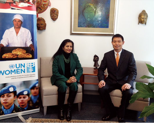 此外,纽约时间3月5日上午,联合国总部官员还在会前特邀方玉友先生,共同探讨企业如何以创新思维帮助女性迎接职场挑战。妇女署执行副主任Lakshmi Puri女士热情地为方玉友先生介绍了诸多解决女性就业挑战的国际潮流思路。
