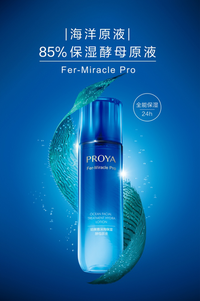 晚宴现场,珀莱雅事业部总经理裴竹祥公布了未来珀莱雅品牌的DNA:海洋、科技、文化,并且将专属的海洋图腾品牌符号化。随后他发布了关于海洋的新产品——海洋原液。这次珀莱雅为消费者带来的重磅新品、诚意之作海洋原液旨在回归肌肤最真实的需求。众所周知,酵母发酵深受护肤界贵妇大牌青睐,而此次珀莱雅的新品海洋原液就是利用尖端技术释放巨藻体内的活性酵母成分,然后淬炼出纯度高达85%的深海保湿酵母原液Fer-Miracle Pro,真正实现更少添加,但是却将萃取的有效成分功效发挥到极致。在展现强大的产品力的同时,在这款新品的外包装上,珀莱雅也是将海洋元素发挥到了极致,蓝色的透明瓶身,甚至可以看见瓶内原液的流动,仿若海洋之水;在瓶器的设计上,珀莱雅从非遗纹样中得到启发,用现代设计语言将12个非对称的独特海水纹曲线应用于瓶盖上,既传承了国学思想对于水的灵动也彰显了珀莱雅这个品牌自身的智慧。