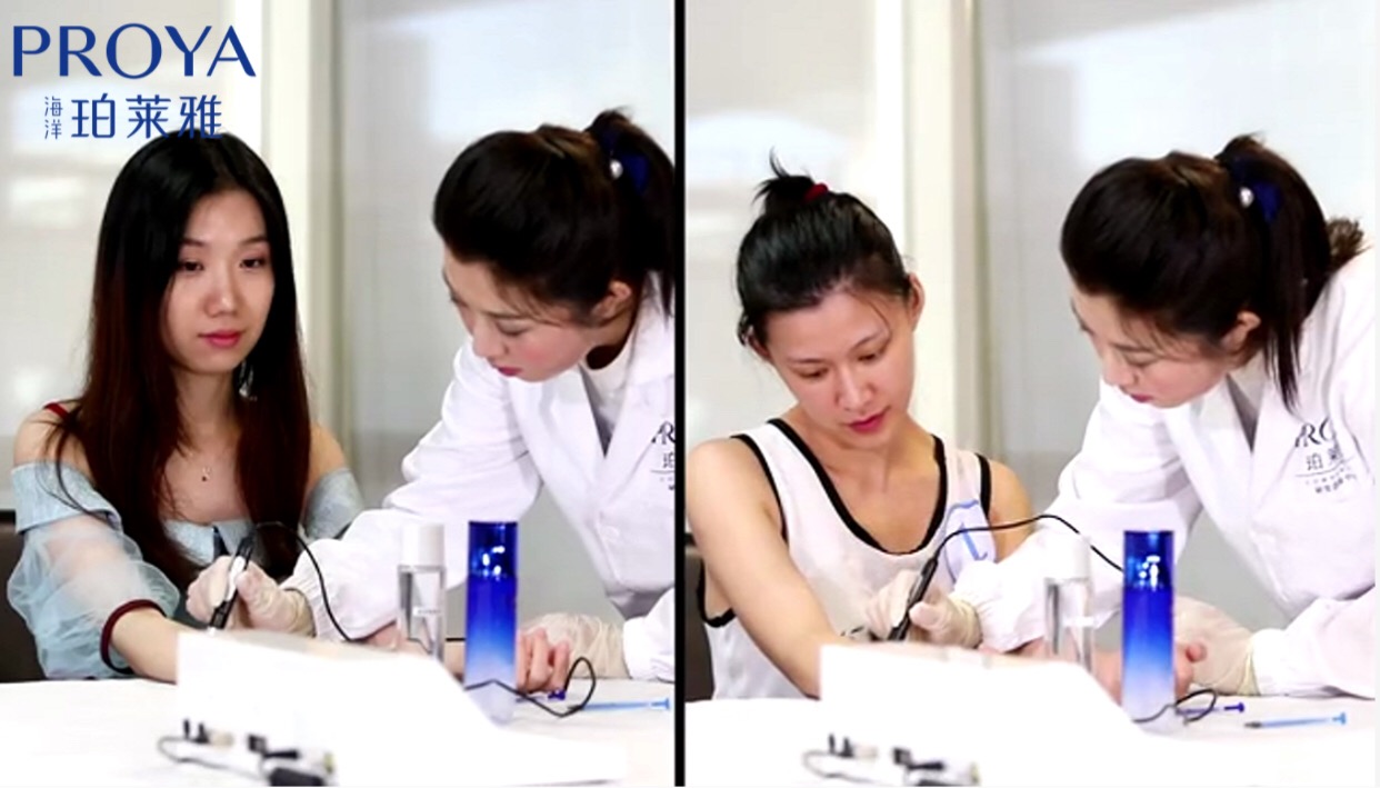 在肌肤保湿时长测试中,珀莱雅选择了5位不同年龄和肤质的女性消费者,在模拟沙漠极度干燥环境中进行肌肤水分含量测试。5位测试者分别在两只手臂处涂抹海洋原液和玻尿酸原液,3分钟、30分钟、60分钟后对比发现涂抹海洋原液的手臂水分含量高于玻尿酸原液2.5-3倍。实验证明,海洋原液的保湿力远超被称为保湿圣品的玻尿酸原液。同时通过第三方专业机构测试证实海洋原液可实现24小时全能保湿。