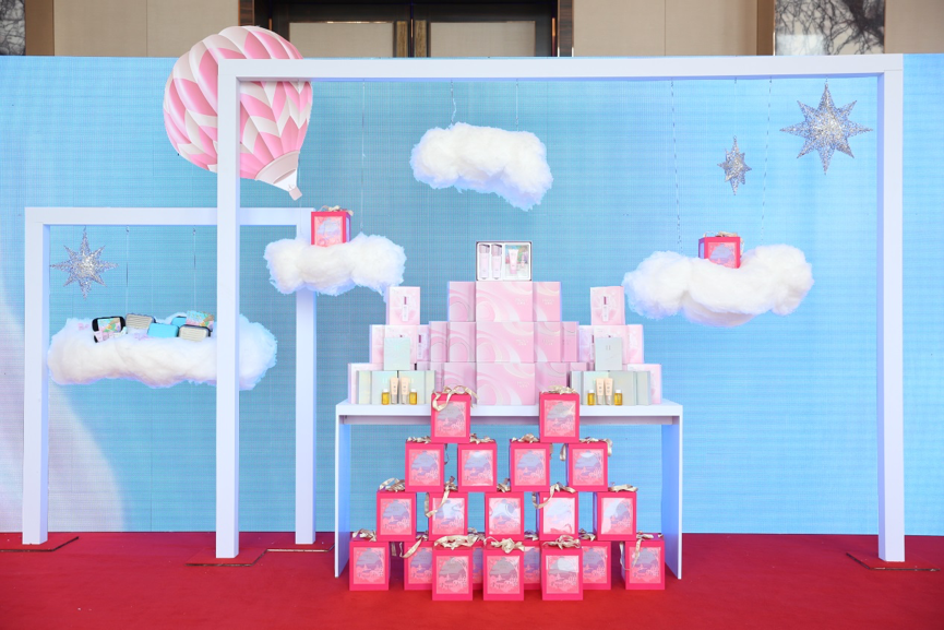 这一次,靓白芯肌将带领我们去往的是南法的蔚蓝海岸。为了打造身临其境的感觉,珀莱雅首次尝试极具视觉震撼力的环屏巨幕。一踏入会场,便如同置身在纯净阳光的度假天堂,粉白相间的热气球,柔美细腻的白色云朵,以及背景LED屏幕上清晰播放的南法风情片,勾勒出一派温柔曼妙的南法风光。发布会以自由随性的鸡尾酒会形式展开,不停歇的爵士乐和穿梭其中的外模侍者,让每一个与会者都深深沉醉在这片异国海洋风情之中。